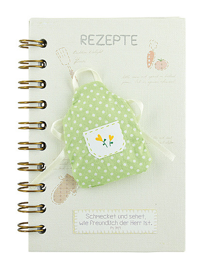 Eine schöne Geschenkidee für Menschen, die gerne kochen ist diese Geschenkschachtel mit Rezeptbuch (praktische Spirallbindung) inklusive Register und dem Text: „Schmeckt und sehet, wie freundlich der Herr ist, Ps. 34,9.“ Das Set ist mit einer praktischen Schürze aus Baumwoll-Polyestergemisch (65 x 45 cm) ist zum Umbinden. Die praktische Tasche auf der Schürze ist mit einer Spitzenbordürre verziert.