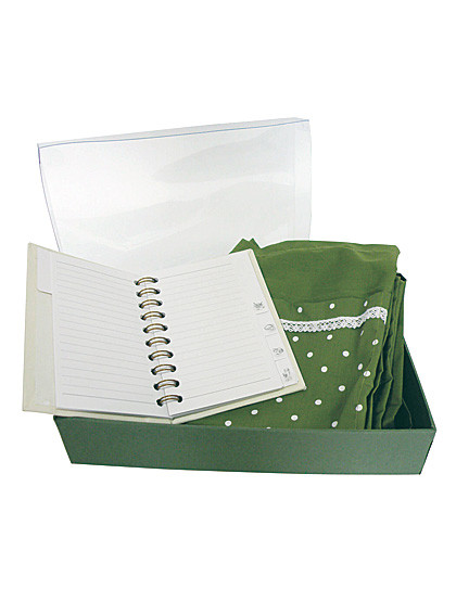 Geschenkset mit Rezeptbuch und Kochschürze für alle „Haubenköche“. Rezeptbuch mit Register, Schürze aus Baumwoll-Polyestergemisch (65 x 45 cm).