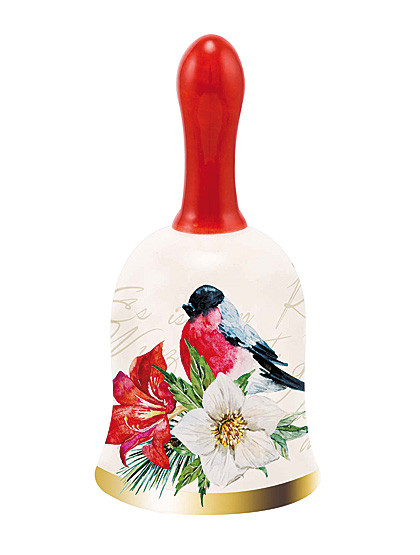 Rote Lilien und blütenweiße Christrosen zieren den Glockenkörper. Mit eleganter Goldprägung, Porzellan, Höhe: 12 cm, in Geschenkbox.