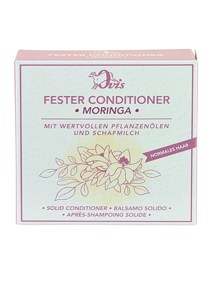 Der „Fester Conditioner“ verleiht dem Haar natürlichen Glanz und Geschmeidigkeit. Wertvolles Moringa- und Macadamianussöl sowie Mango Butter und Schafmilch sorgen für intensive Pflege und leichte Kämmbarkeit. Wirkungsvolles Brennnesselextrakt stärkt das Haar. Ideale Pflege ganz ohne Plastikverpackung und äußerst sparsam in der Anwendung.