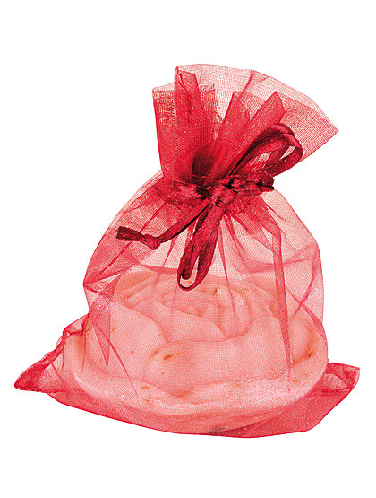 Die Schafmilchseife wird in einem passenden Organza-Säckchen geliefert. - Zusatzinformation