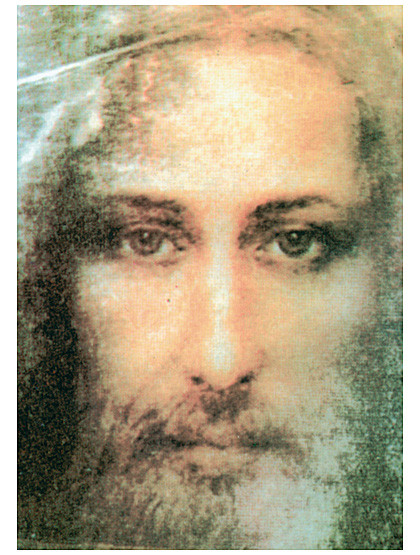 „Antlitz Jesu - Farbkarte“ dem Grabtuch von Turin nachempfunden. Im Format A5 ab drei Stück erhältlich.