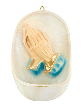 „Betenden Hände“- Weihbrunnen, aus Steinharz von Hand bemalt, 12 x 7 cm groß