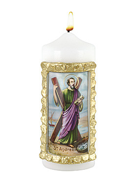 Heiliger Andreas-Kerze, 6 x 16 cm, Handarbeit.