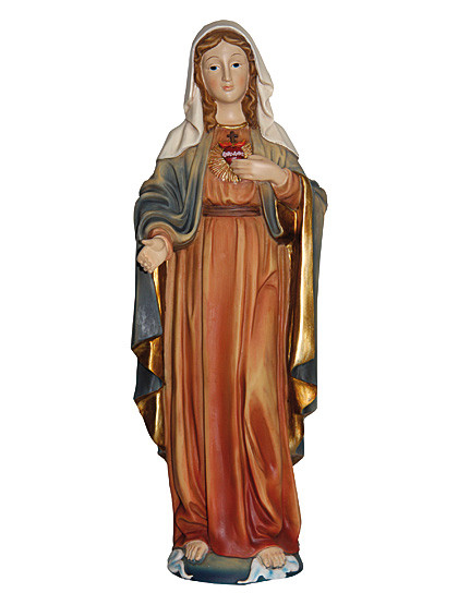 Diese Marienstatue mit der Darstellung des Herzen Mariens, ruft geradezu nach dem Gebet. Eine zarte, liebevolle Herz Mariä-Statue in edlen Farben, handkoloriert. Schenken Sie ihr einen Platz in Ihrem Heim. Kunstharz, Höhe: 20 cm.