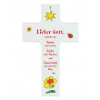 Kinder-Holzkreuz mit dem Aufdruck; “Lieber Gott, schenke uns Sonne zum Leben, Liebe zum Wachsen und Zuversicht auf unserem Weg!“ Farbenfroh verziert, 9 x 13 cm.