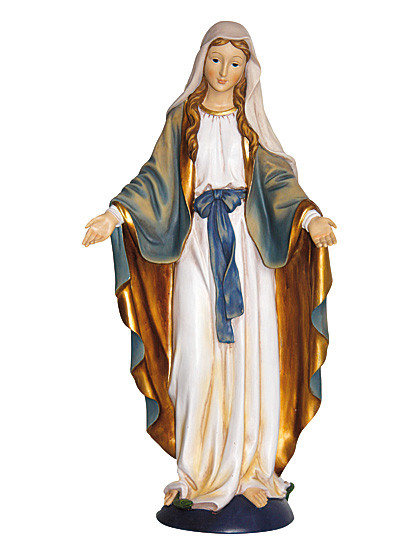 Maria, breite deinen Mantel aus, mach uns Schutz und Schirm daraus…Eine berührende Darstellung der hl. Muttergottes, sorgfältig von Hand bemalt. Mit zarten Zügen und fein gearbeitet. Aus Polyresin, einer besonderen Art von Kunststein. Höhe: 21 cm. - Zusatzinformation