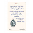 Das Schutzkärtchen mit einer passenden, fein geprägten Medaille und einem Segensgebet auf der Rückseite ist so groß wie eine Bankomatkarte (5 x 8 cm) und passt daher in jede Brieftasche. Somit ist das Heiligenkärtchen ein steter Begleiter auf all Ihren Wegen.