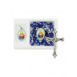 Dieser Rosenkranz ist dem Herzen Mariens gewidmet, deren Darstellungen sich auf den eingearbeiteten farbigen Medaillons findet. Die Perlen sind schön facettiert, sodass sie in allen Schattierungen der blauen Grundfarbe schimmern. - Zusatzinformation
