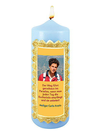 Der Hl. Carlo Acutis ist ein echtes Beispiel dafür, dass wir im Leben die Kraft des Glaubens und die Bereitschaft, durch die Taten der Liebe in unserem Alltag, sichtbar erleben können. Qualitätskerze 7 x 20 cm. - Zusatzinformation