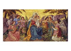 Marienbild-Billett, 3 Stück, Größe 10 x 22 cm. Ein wunderschönes Marienbild, die Muttergottes als Königin der Engel, ziert dieses einzigartige Billet, dessen Innenblatt ein schönes Gedicht schmückt. Eine Ehre für jeden, dem es zugedacht ist. Wird mit Kuvert geliefert. - Zusatzinformation
