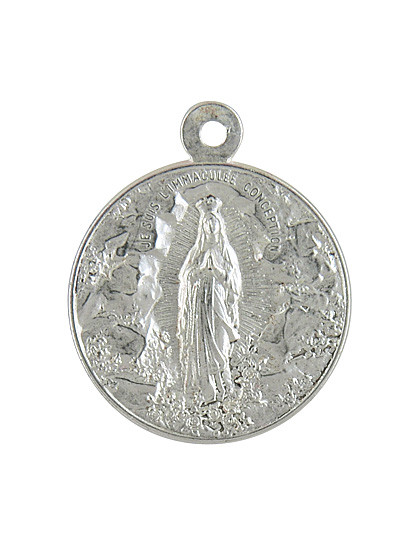 Ein schöner Begleiter ist diese feingeprägte Medaille Unserer Lieben Frau von Lourdes, auf der Rückseite ist die Abbildung Herz Jesu. - Zusatzinformation