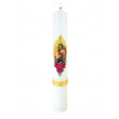 Madonna-Kerze mit drei Wachsrosen, echte Handarbeit. 40 x 6 cm.