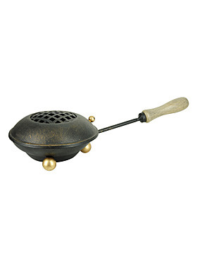 Sehr stabil und gegen Rußschwärze ziemlich unempfindlich ist diese Räucherpfanne. Damit können Sie ungefährdet in alter Tradition den verdampfenden Weihrauch durch Ihr ganzes Heim tragen! Räuchersand verhindert Verbrennungen – gleich mitbestellen! Ein selten schönes Geschenk! ø 11 cm - Zusatzinformation