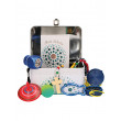 Inhalt: Begleitheft, Rosenkranz, Fisch-Karabinerhaken, Kreisel, Flummi,Kompass, Metalldose: 7,5 x 14,5 x 9,5 cm. - Zusatzinformation