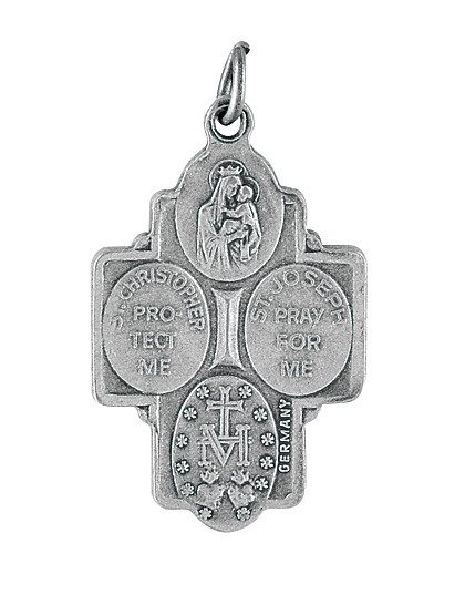 Diese Medaille beinhaltet auf der Vorderseite: Unbeflecktes Herz Jesu, Hl. Josef, Hl. Christopherus und die Wundertätige. Auf der Rückseite befindet sich die Abbildung der Skapuliermadonna