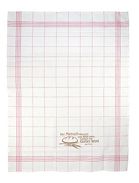 Für vielerlei Zwecke können Sie dieses Tuch mit dem einprägsamen Bibelzitat nach Mt 4,4 verwenden. Es ist aus reiner Baumwolle und bis 60 Grad waschbar!