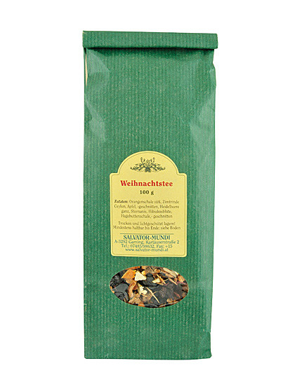 Der Weihnachtstee ist wärmend und ideal für kalte Winterabende, Fruchtstücke und Gewürze verströmen ein Aroma von Gemütlichkeit und Wohlbefinden. Dieser köstliche Tee kann mit Honig und Rotwein gemischt werden und eignet sich auch gut für diverse Punschzubereitungen, auch ohne Alkohol. Er wird im wieder verschließbaren Aromasäckchen geliefert und entfaltet so immer wieder seinen weihnachtlichen Duft!